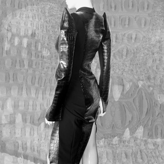 My thesis collection explores a fetish of sensuality. Incorporating a wide variety of fabrics and textures, my designs evoke a more intimate and stimulating experience, going beyond the visual and exploring the wearer’s sense of touch. The high neck silhouettes clinging tight to the body connected through the cold metal chains culminate these intimate sensations bringing to the surface inner taboos about closeness, constriction, agency, and control. The animal prints and textures intertwine a feral animalistic savage quality of human nature that is often held below the surface. My designs create outwardly sophisticated wearable silhouettes which physically and psychologically elicit a deeper intimate sensual stimulation.
